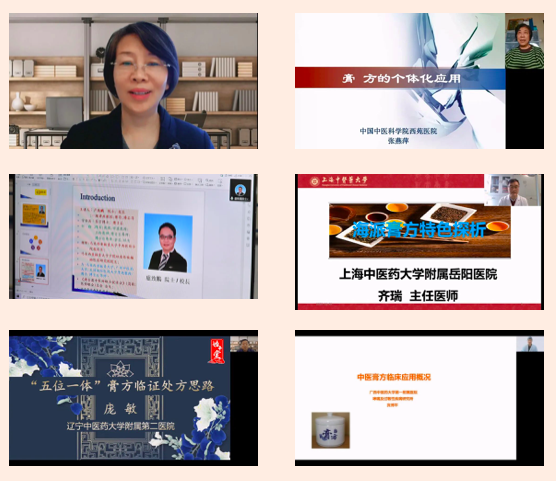 開幕式結束后,大會開展了線上學術報告和學術交流活動。董瑞會長做了《中醫(yī)膏方概論》的學術報告;北京中醫(yī)藥大學蘇慧萍教授、中國中醫(yī)科學院西苑醫(yī)院張燕萍教授、港澳臺中醫(yī)醫(yī)師聯(lián)合促進會總會會長盧致鵬教授、上海中醫(yī)藥大學岳陽中西醫(yī)結合醫(yī)院齊瑞教授、遼寧中醫(yī)藥大學附屬第二醫(yī)院龐敏教授、廣西中醫(yī)藥大學第一附屬醫(yī)院賓博平教授六位中醫(yī)膏方專業(yè)委員會副會長分別作了《膏方防治慢阻肺的組方用藥特點》《膏方的個體化應用》《脾胃系統(tǒng)(慢性胃炎疾?。┑闹形麽t(yī)論述臨床觀察與證型研究》《海派膏方的特點》《膏方臨床應用思路》《中醫(yī)膏方臨床概論》的學術報告,并與在線專家學者進行了互動交流。中醫(yī)膏方專業(yè)委員會第二屆理事會換屆會議暨第五屆學術年會取得了圓滿成功。