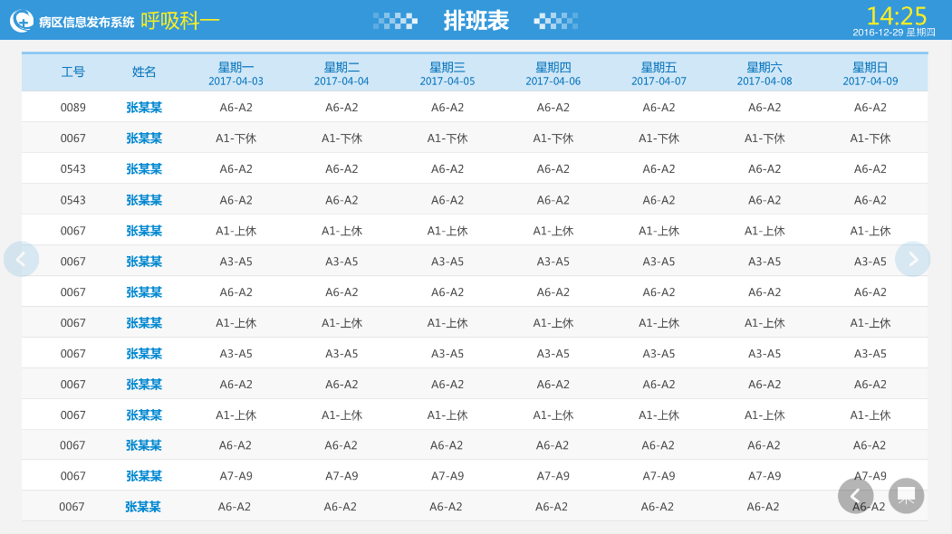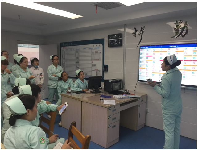 護(hù)理交互大屏通過(guò)對(duì)臨床護(hù)理信息和醫(yī)療物聯(lián)設(shè)備信息的抓取、整合、分析、重組,實(shí)現(xiàn)信息可視化顯示并搭建人機(jī)交互的平臺(tái)。該平臺(tái)不僅能從傳統(tǒng)的HIS工作站和移動(dòng)護(hù)士工作站中抓取臨床護(hù)理信息,還可以將臨床護(hù)理信息進(jìn)行解析、分類(lèi)、結(jié)構(gòu)化顯示。交互大屏集成了臨床護(hù)理中頻繁使用的信息模塊,如患者電子概覽板、排班總覽、值班報(bào)告、工作任務(wù)、健康宣教等功能。