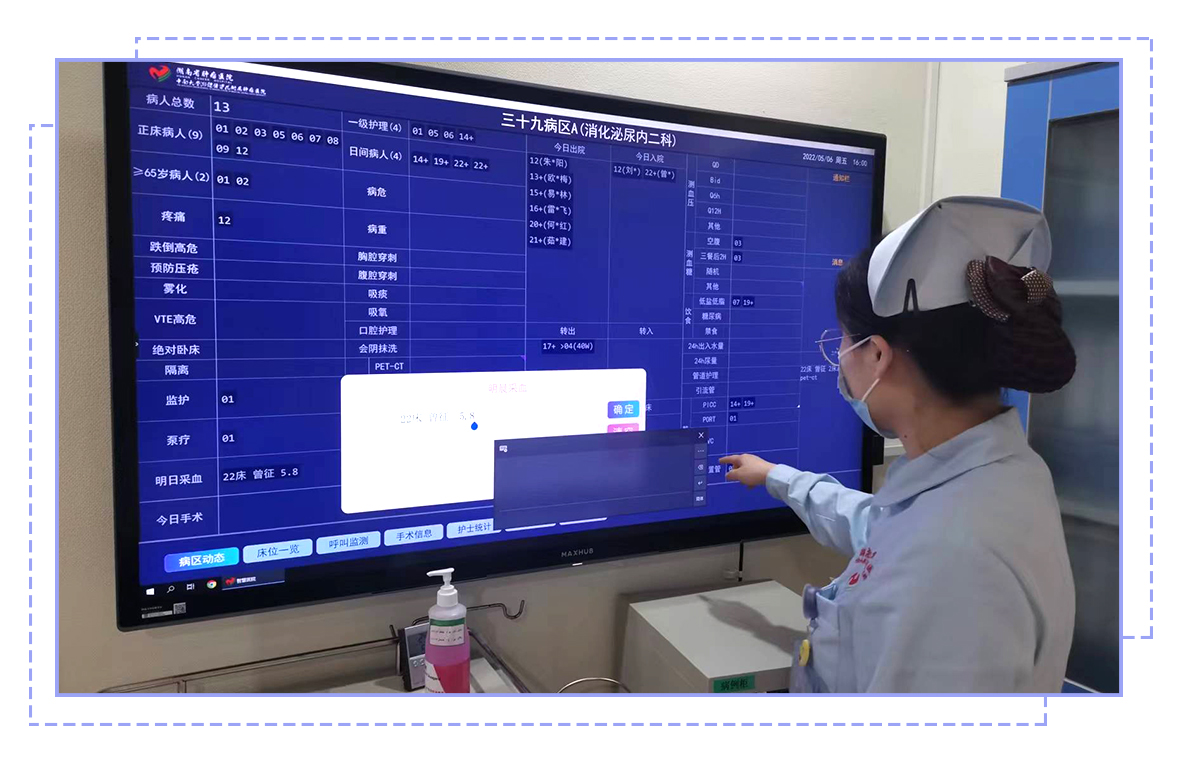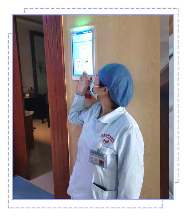 患者床頭屏是一個電子化的床頭卡,它結(jié)合了傳統(tǒng)的床頭呼叫器,患者需要幫助時可一鍵呼叫,并且它還可以實時更新患者數(shù)據(jù)顯示,有了它護士每日可快速完成三查七對的護理工作。