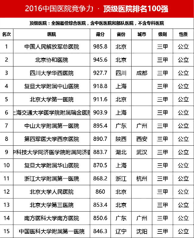 “頂級醫(yī)院100強”采用的排名指標體系包括四個方面:醫(yī)院最優(yōu)規(guī)模(實開床位數(shù)、年門急診量、年出院量、全院人數(shù));醫(yī)療技術(shù)(正高職稱人數(shù)/全院人數(shù)、全院醫(yī)師人數(shù)/實開床位數(shù)、醫(yī)療設(shè)備資產(chǎn)/總資產(chǎn)、年住院手術(shù)量/年出院量、國家級衛(wèi)紀委臨床重點???總??茣?、ICU床占比);醫(yī)院運行(平均住院天數(shù)、床位使用率、門診均次費用/當?shù)厝司鵊DP、住院均次費用/當?shù)厝司鵊DP、外省住院病人占比);學術(shù)影響力(院士人數(shù)、學術(shù)領(lǐng)袖占比、教育部重點學科及重點實驗室/總??茢?shù)、本年度獲國家自然科學基金項目數(shù)量和總?cè)~)。