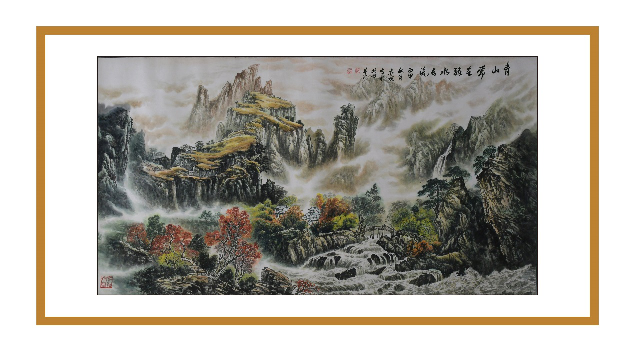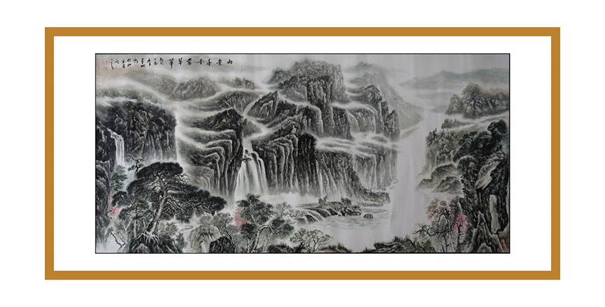 欣賞譚老的畫(huà)作,使人有一種難以言表的美感,問(wèn)及原因,他說(shuō):“為了研究山水,我閱讀了大量古、今書(shū)籍,我發(fā)現(xiàn)歷朝歷代對(duì)山水國(guó)畫(huà)都相當(dāng)重視,山水被視為鎮(zhèn)宅的代名詞,一直以來(lái)在帝王家它都是以圖騰的形式存在的。”但為了能夠更好地傳承歷史文化,他鉆研國(guó)學(xué),將儒、釋、道的精髓理念及思想融入到作品中,追求創(chuàng)造的是一種“和合”之感,讓這大氣之圖騰成為真正意義上的圖騰。